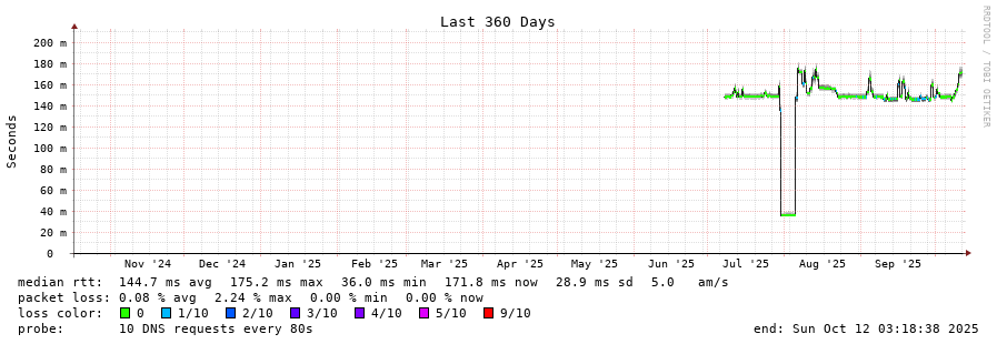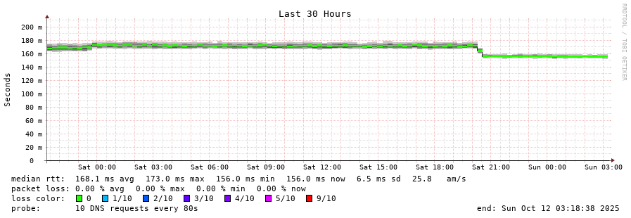 traceroute to 2001:7fd::1 (2001:7fd::1), 30 hops max, 80 byte packets - Generated at 2025-10-12 03:15:01