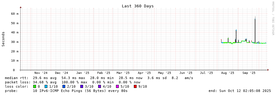 traceroute to 2001:35c0::204:27:68:152 (2001:35c0::204:27:68:152), 30 hops max, 80 byte packets - Generated at 2025-10-12 00:45:02