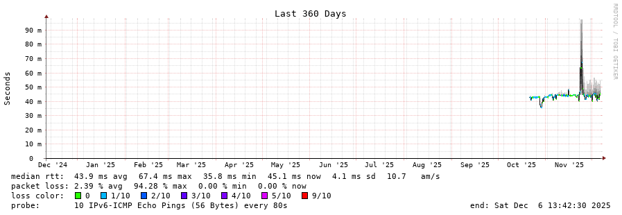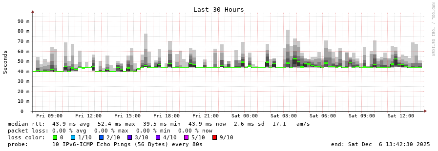 traceroute to 2a0c:9a40:8610:e3f::1 (2a0c:9a40:8610:e3f::1), 30 hops max, 80 byte packets - Generated at 2025-12-06 13:30:01
