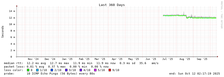 traceroute to 213.133.107.7 (213.133.107.7), 30 hops max, 60 byte packets - Generated at 2025-10-12 01:00:01
