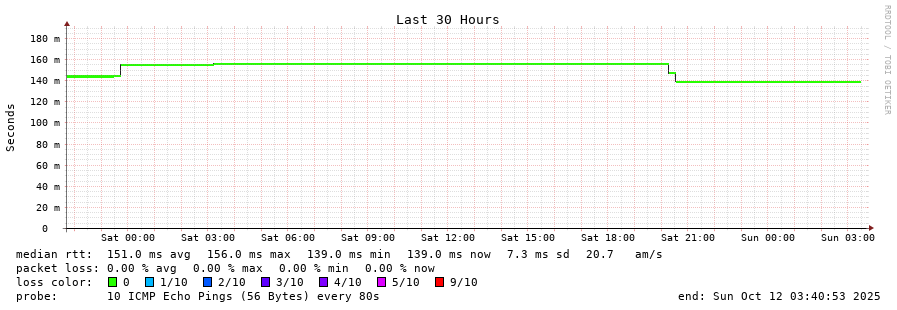 12 > 40.160.226.122 (40.160.226.122) [AS16276] 139.385ms 139.379ms 139.445ms