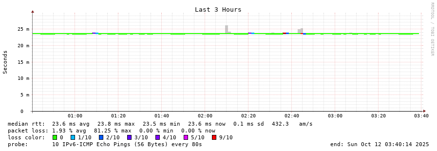 4 > fdff:f003::12a (fdff:f003::12a) [*] 1.035ms 3.566ms 3.911ms