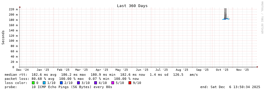 traceroute to 191.53.8.250 (191.53.8.250), 30 hops max, 60 byte packets - Generated at 2025-12-06 13:45:01