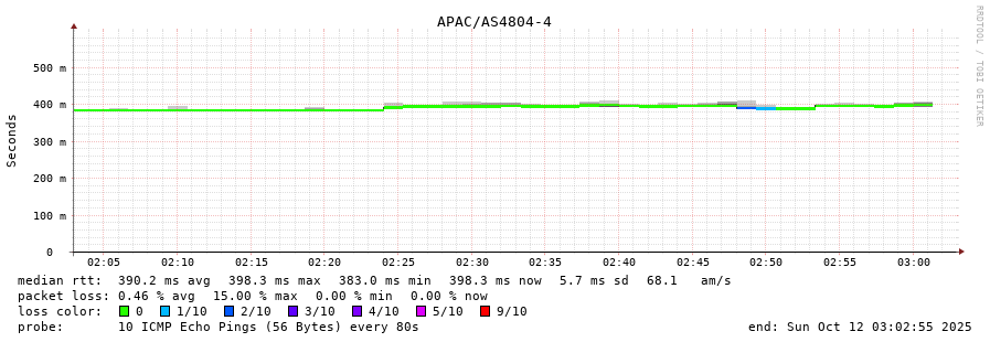 4. Max Roundtrip Time 0.394 seconds